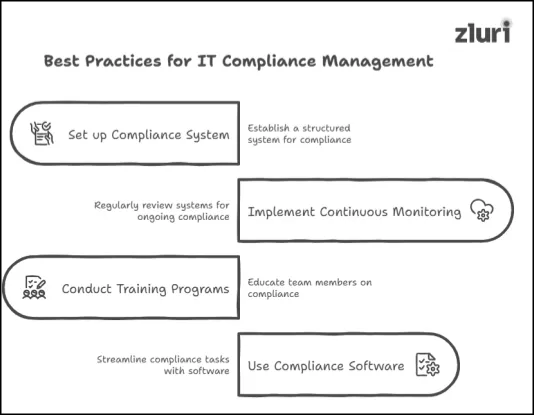 Now, the most crucial best practice is to use an efficient tool to streamline your IT compliance management process. Manually collecting data and ensuring compliance with regulatory requirements can be a complex process. Leveraging a tool will simplify your compliance efforts.