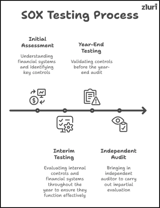 The testing process involves both internal and external controls to verify the integrity of financial reporting. Key areas assessed during SOX testing include: