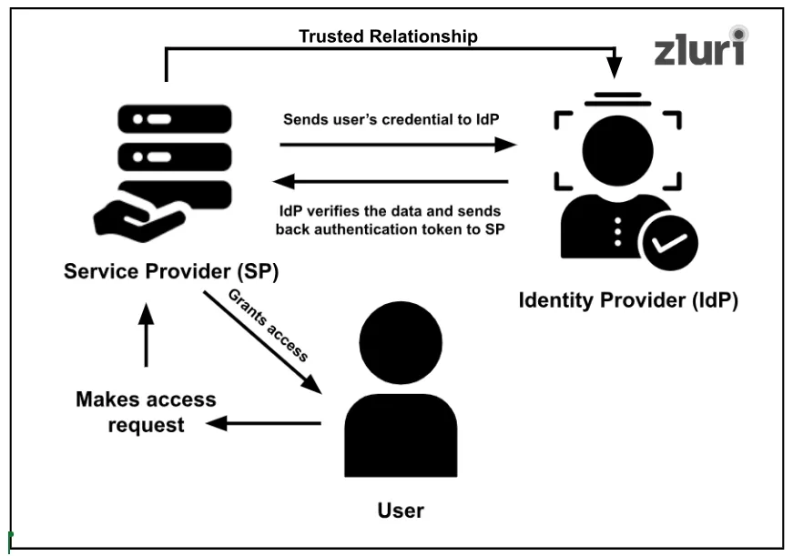 - When a user attempts to log in to an application using their credentials, the application (service provider) redirects the credentials to the identity provider for verification.
