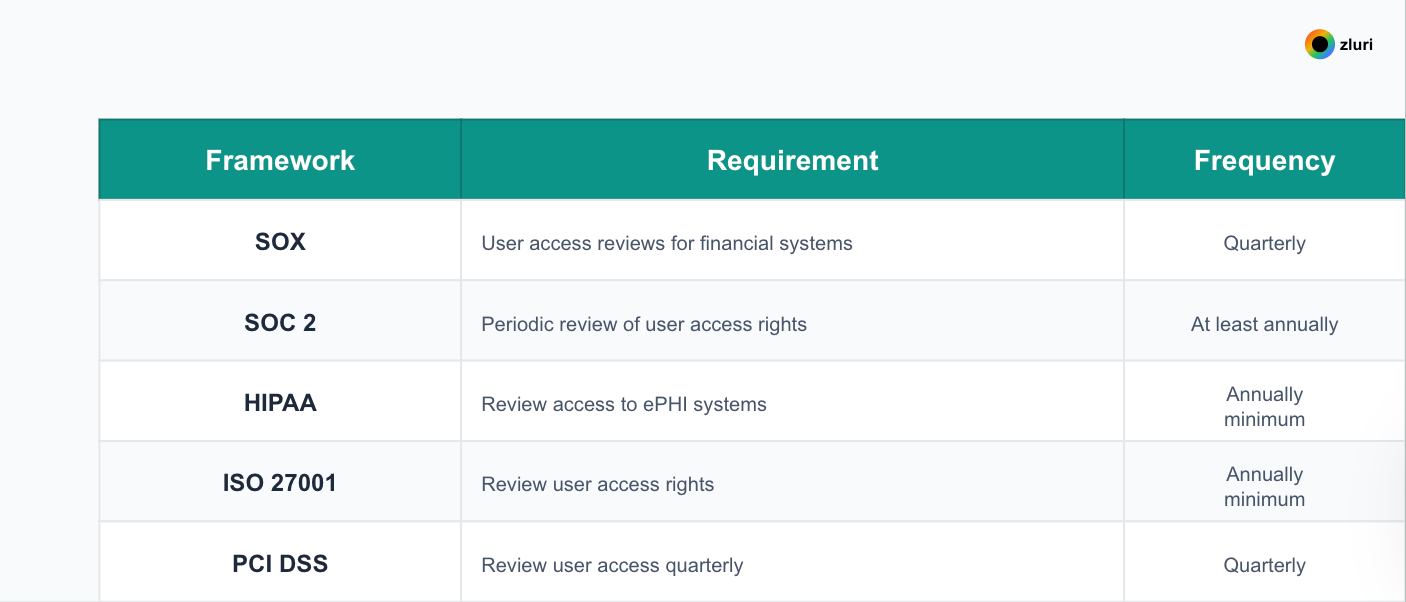 But frameworks don't just require reviews. They require proof. Here's what auditors actually check: