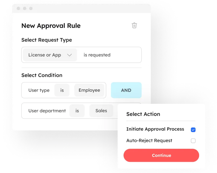 Build custom policies with multi-step approvals for critical applications, that automatically streamlines app requisition & fulfillment