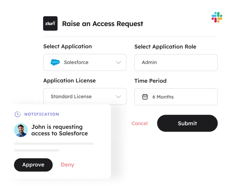 Boost employee experience & streamline by facilitating the access request process entirely on Slack without any context switching or mail threads