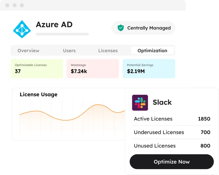 Analyze savings opportunities from five categories of license utilization data and act on it instantly with optimization actions